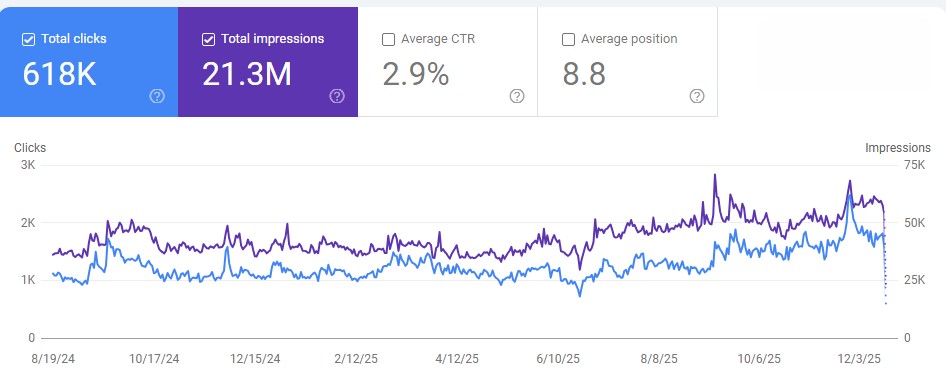 618,000 clicks, 21.3 million impressions, and 278% growth in organic traffic —